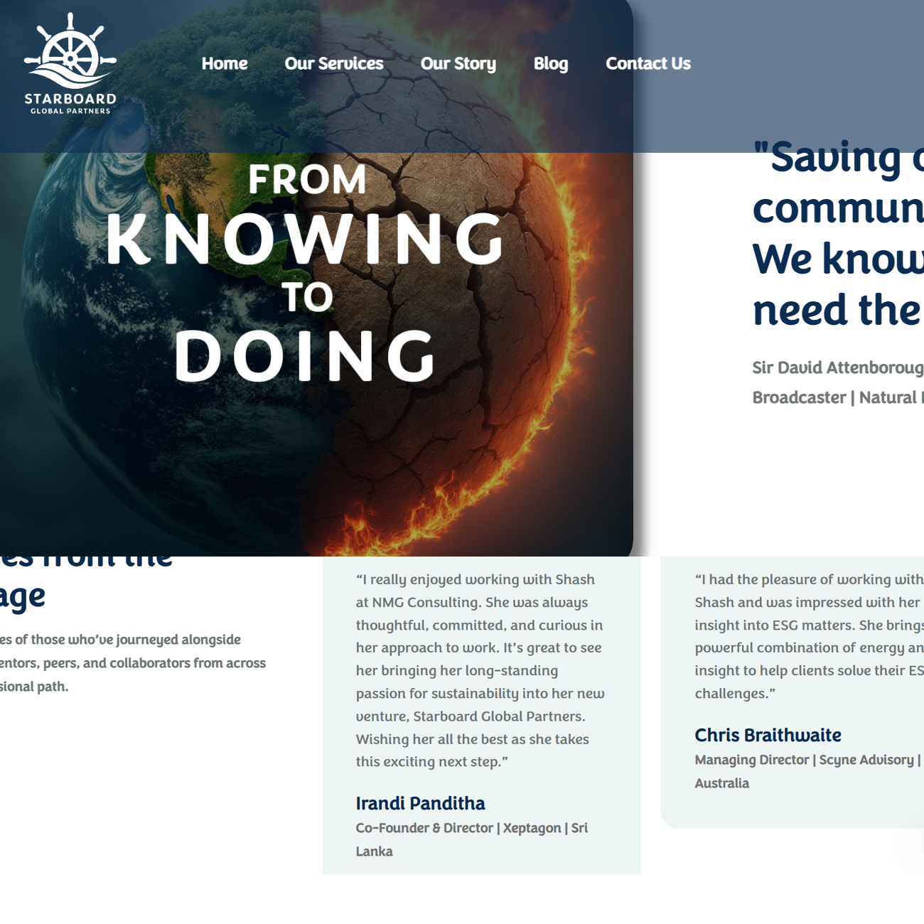 NIMEUM designed and developed the official digital platform for Starboard Global Partners, a consultancy and advisory firm focused on climate resilience, sustainability strategy, and climate risk assessment. The website serves as a strategic online presence that positions Starboard Global Partners as a purpose-led, impact-driven partner for businesses and communities seeking to integrate sustainability into their operations and long-term planning. Starboard Global Partners