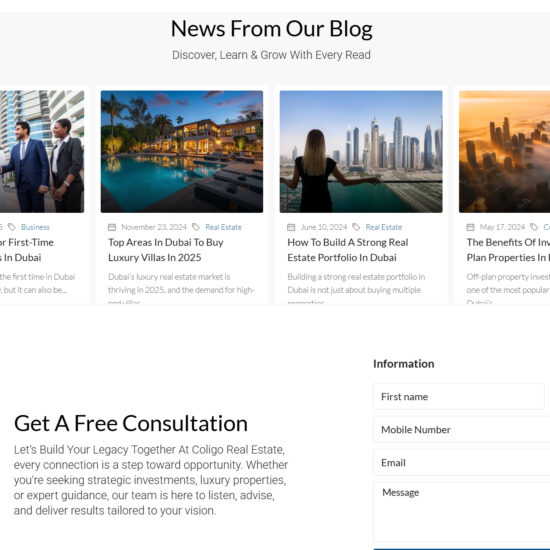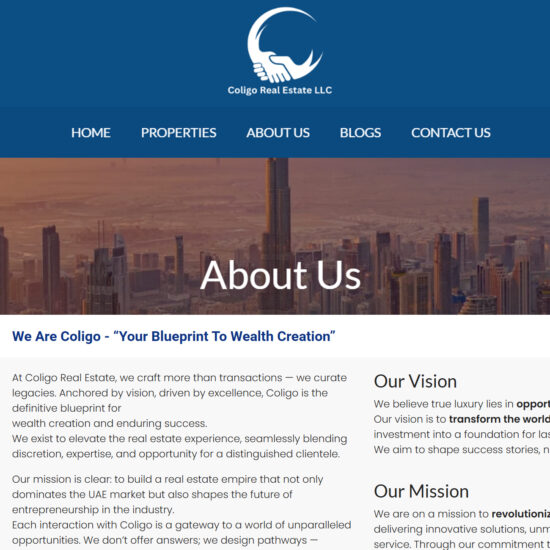 We delivered the official corporate website for Coligo Real Estate, a Dubai-based luxury real estate advisory and investment services firm. The primary goal was to establish a refined digital platform that reflects Coligo’s commitment to bespoke property investment guidance, high-end market expertise, and personalized client engagement. coligo.ae